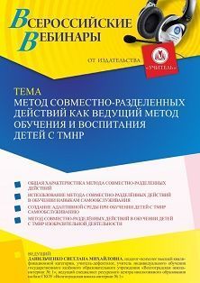 Вебинар Метод совместно-разделенных действий как ведущий метод обучения и воспитания детей с ТМНР