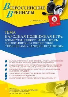 Вебинар Народная подвижная игра: формируем ценностные ориентиры дошкольников, в соответствии с принципами “народной педагогики”