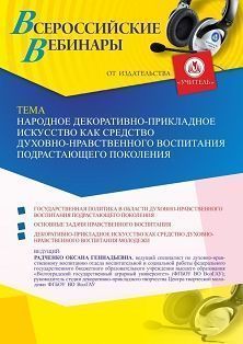 Вебинар Народное декоративно-прикладное искусство как средство духовно-нравственного воспитания подрастающего поколения
