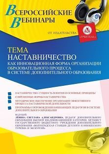 Вебинар Наставничество как инновационная форма организации образовательного процесса в системе дополнительного образования