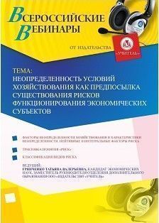 Вебинар "Неопределенность условий хозяйствования как предпосылка существования рисков функционирования экономических субъектов"