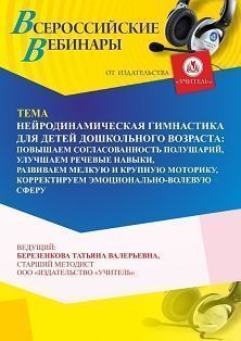Вебинар Нейродинамическая гимнастика для детей дошкольного возраста: повышаем согласованность полушарий, улучшаем речевые навыки, развиваем мелкую и крупную моторику, корректируем эмоционально-волевую сферу