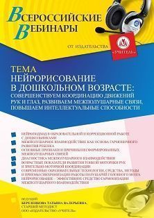 Вебинар Нейрорисование в дошкольном возрасте: совершенствуем координацию движений рук и глаз, развиваем межполушарные связи, повышаем интеллектуальные способности