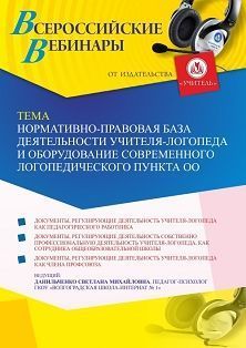 Вебинар Нормативно-правовая база деятельности учителя-логопеда и оборудование современного логопедического пункта ОО