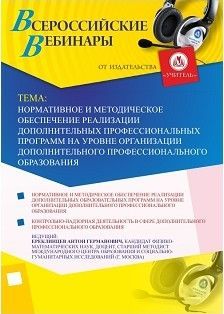 Вебинар "Нормативное и методическое обеспечение реализации дополнительных профессиональных программ на уровне организации дополнительного профессионального образования"