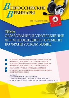 Вебинар Образование и употребление форм прошедшего времени во французском языке