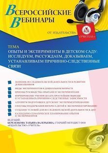 Вебинар Опыты и эксперименты в детском саду: исследуем, рассуждаем, доказываем, устанавливаем причинно-следственные связи