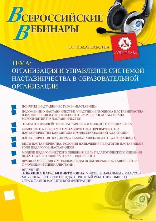 Вебинар "Организация и управление системой наставничества в образовательной организации"