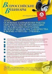 Вебинар Основные направления работы образовательной организации по реализации программы целевой модели наставничества в форме “Учитель – Ученик”