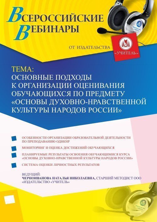Вебинар "Основные подходы к организации оценивания обучающихся по предмету Основы духовно-нравственной культуры народов России"