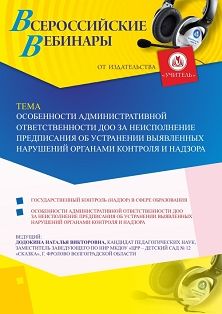 Вебинар Особенности административной ответственности ДОО за неисполнение предписания об устранении выявленных нарушений органами контроля и надзора
