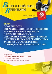 Вебинар Особенности коррекционно-педагогической работы с обучающимися с нарушением слуха, специфика проведения уроков и специальных коррекционных занятий в соответствии с ФАОП для обучающихся с ОВЗ