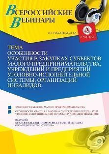 Вебинар Особенности участия в закупках субъектов малого предпринимательства, учреждений и предприятий уголовно-исполнительной системы, организаций инвалидов