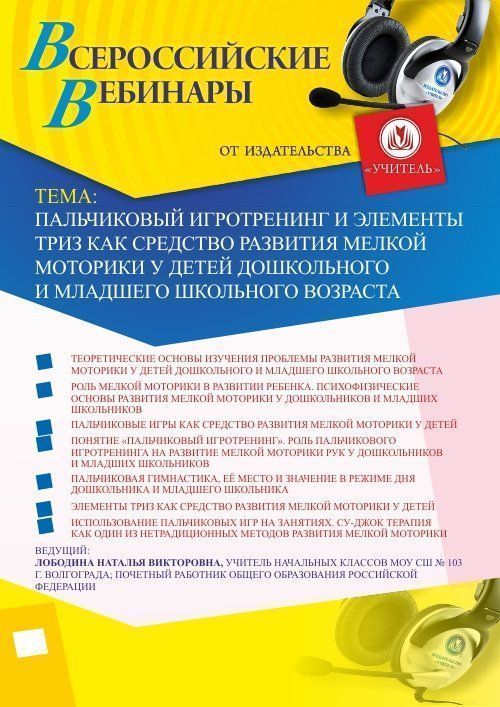 Вебинар Пальчиковый игротренинг и элементы ТРИЗ как средство развития мелкой моторики у детей дошкольного и младшего школьного возраста