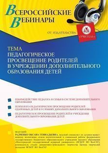 Вебинар Педагогическое просвещение родителей в учреждении дополнительного образования детей