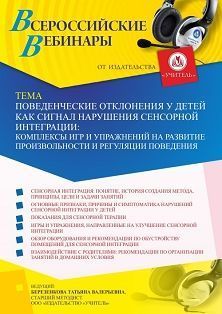Вебинар Поведенческие отклонения у детей как сигнал нарушения сенсорной интеграции: комплексы игр и упражнений на развитие произвольности и регуляции поведения