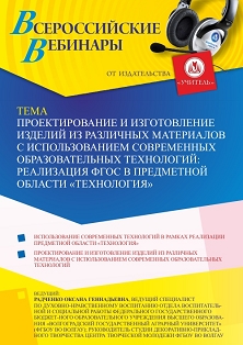Вебинар Проектирование и изготовление изделий из различных материалов с использованием современных образовательных технологий: реализация ФГОС в предметной области “Технология”