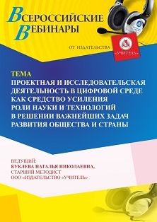 Вебинар Проектная и исследовательская деятельность в цифровой среде как средство усиления роли науки и технологий в решении важнейших задач развития общества и страны