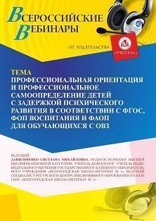 Вебинар Профессиональная ориентация и профессиональное самоопределение детей с задержкой психического развития в соответствии с ФГОС, ФОП воспитания и ФАОП для обучающихся с ОВЗ