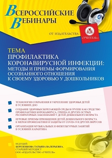 Вебинар Профилактика коронавирусной инфекции: методы и приемы формирования осознанного отношения к своему здоровью у дошкольников