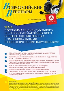 Вебинар Программа индивидуального психолого-педагогического сопровождения ребенка с эмоциональными и поведенческими нарушениями