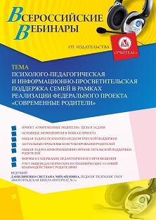 Вебинар Психолого-педагогическая и информационно-просветительская поддержка семей в рамках реализации Федерального проекта “Современные родители”