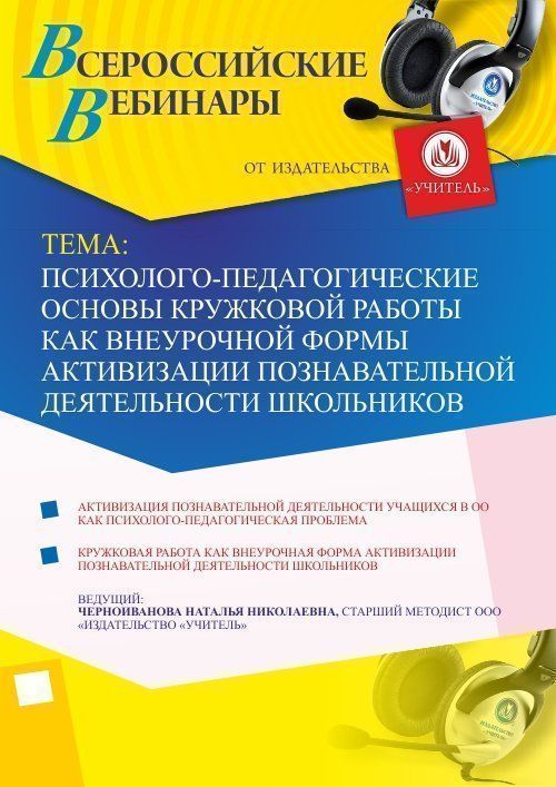Вебинар "Психолого-педагогические основы кружковой работы как внеурочной формы активизации познавательной деятельности школьников"