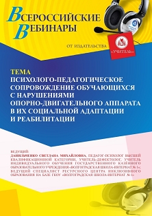 Вебинар Психолого-педагогическое сопровождение обучающихся с нарушениями опорно-двигательного аппарата (НОДА) в их социальной адаптации и реабилитации