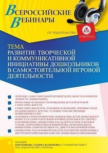Вебинар Развитие творческой и коммуникативной инициативы дошкольников в самостоятельной игровой деятельности