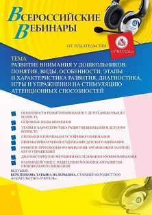 Вебинар Развитие внимания у дошкольников: понятие, виды, особенности, этапы и характеристика развития, диагностика, игры и упражнения на стимуляцию аттенционных способностей