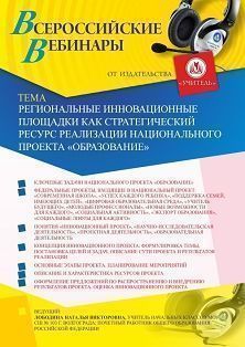 Вебинар Региональные инновационные площадки как стратегический ресурс реализации национального проекта “Образование”