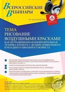 Вебинар Рисование воздушными красками как нетрадиционная изобразительная техника в работе с детьми дошкольного и младшего школьного возраста