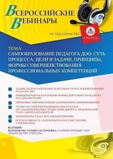 Вебинар Самообразование педагога ДОО: суть процесса, цели и задачи, принципы, формы совершенствования профессиональных компетенций