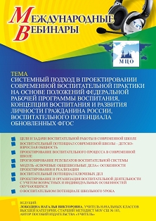 Вебинар Системный подход в проектировании современной воспитательной практики на основе положений Федеральной рабочей программы воспитания, Концепции воспитания и развития личности гражданина России, воспитательного потенциала обновленных ФГОС