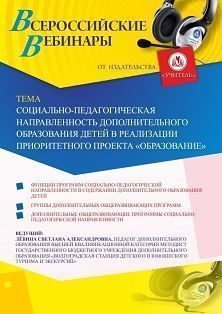 Вебинар Социально-педагогическая направленность дополнительного образования детей в реализации приоритетного проекта “Образование”