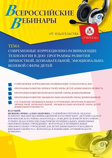 Вебинар Современные коррекционно-развивающие технологии в ДОО: программы развития личностной, познавательной, эмоционально-волевой сферы детей