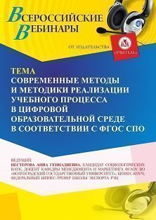 Вебинар Современные методы и методики реализации учебного процесса в цифровой образовательной среде в соответствии с ФГОС СПО