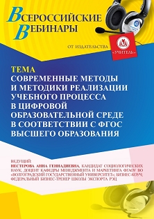 Вебинар Современные методы и методики реализации учебного процесса в цифровой образовательной среде в соответствии с ФГОС высшего образования