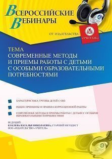 Вебинар Современные методы и приемы работы с детьми с особыми образовательными потребностями