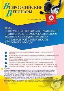 Вебинар Современные подходы к организации индивидуального образовательного маршрута (ИОМ) дошкольника по театральной деятельности в условиях ФГОС ДО