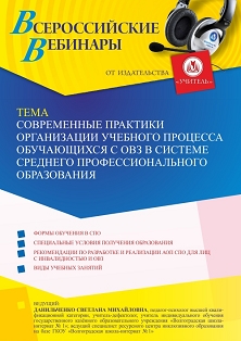 Вебинар Современные практики организации учебного процесса обучающихся с ОВЗ в системе среднего профессионального образования