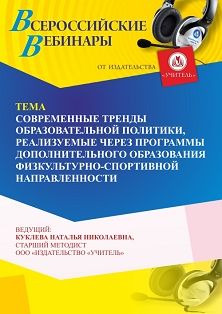 Вебинар Современные тренды образовательной политики, реализуемые через программы дополнительного образования физкультурно-спортивной направленности