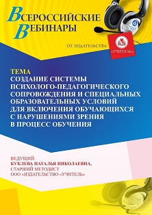 Вебинар Создание системы психолого-педагогического сопровождения и специальных образовательных условий для включения обучающихся с нарушениями зрения в процесс обучения