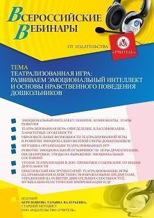 Вебинар Театрализованная игра: развиваем эмоциональный интеллект и основы нравственного поведения дошкольников