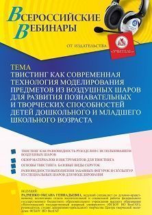 Вебинар Твистинг как современная технология моделирования предметов из воздушных шаров для развития познавательных и творческих способностей детей дошкольного и младшего школьного возраста