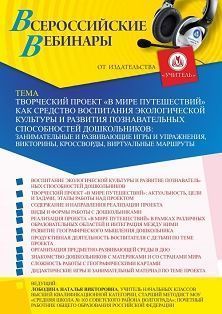 Вебинар Творческий проект “В мире путешествий” как средство воспитания экологической культуры и развития познавательных способностей дошкольников: занимательные и развивающие игры и упражнения, викторины, кроссворды, виртуальные маршруты