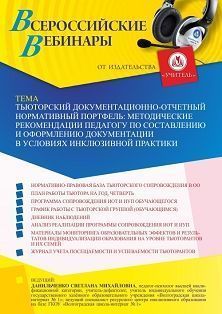 Вебинар Тьюторский документационно-отчетный нормативный портфель: методические рекомендации педагогу по составлению и оформлению документации в условиях инклюзивной практики
