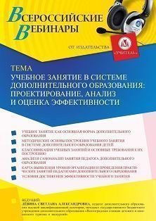 Вебинар Учебное занятие в системе дополнительного образования: проектирование, анализ и оценка эффективности