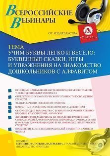 Вебинар Учим буквы легко и весело: буквенные сказки, игры и упражнения на знакомство дошкольников с алфавитом