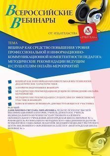 Вебинар Вебинар как средство повышения уровня профессиональной и информационно-коммуникационной компетентности педагога: методические рекомендации ведущим и слушателям онлайн-мероприятий